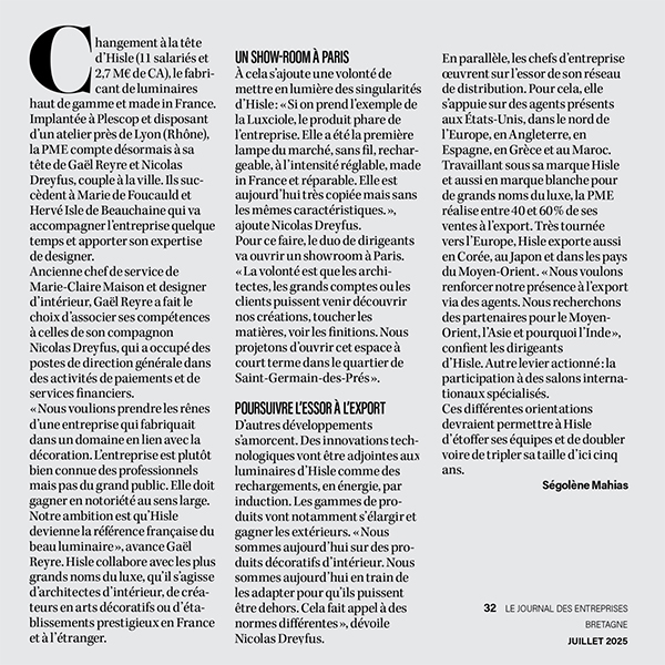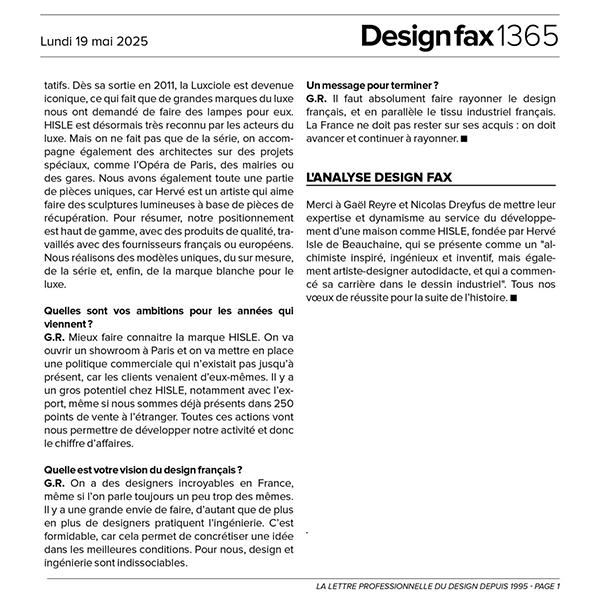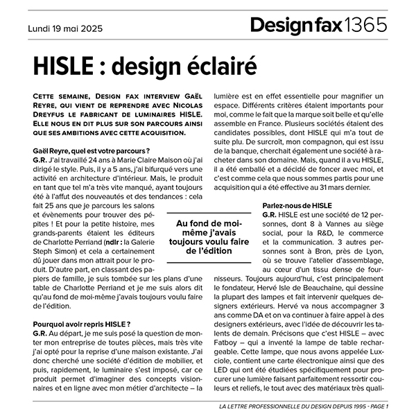 Interview with Gaël Reyre, new owner of HISLE since 31 March 2025, by Christophe Chaptal, editor-in-chief of Design fax.
