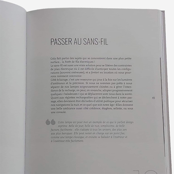 This book offers practical and inspiring solutions for designing interiors that are functional, aesthetically pleasing and soothing. The LUXCIOLE appears on page 48, "going cordless". By Brigitte Noelle Legrand, published by Editions Eyrolles.